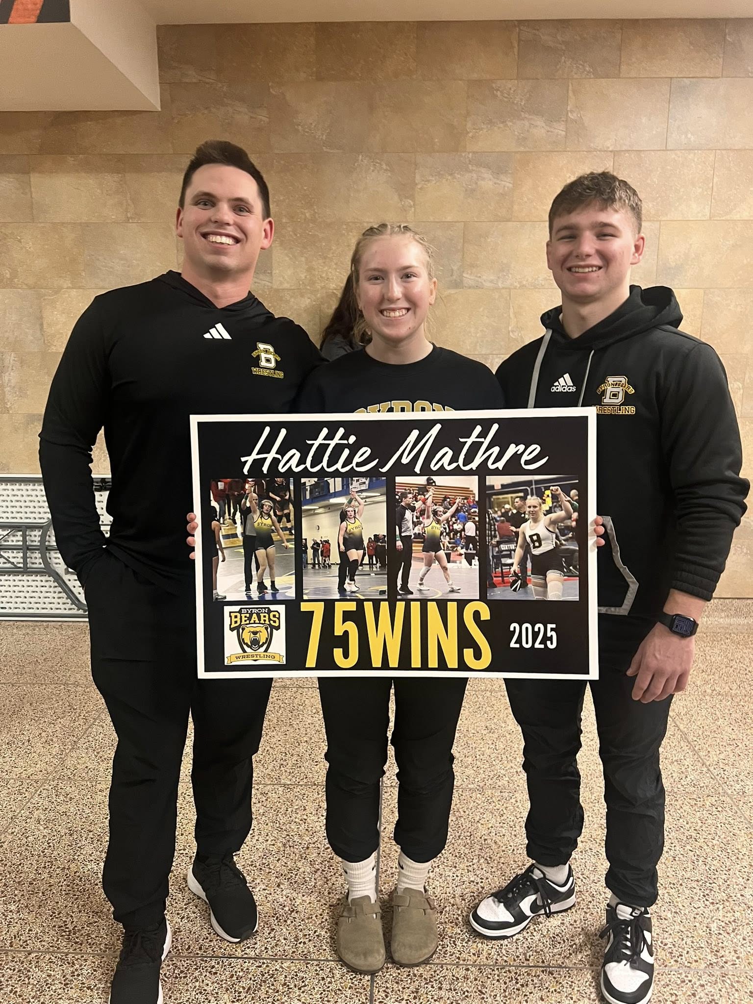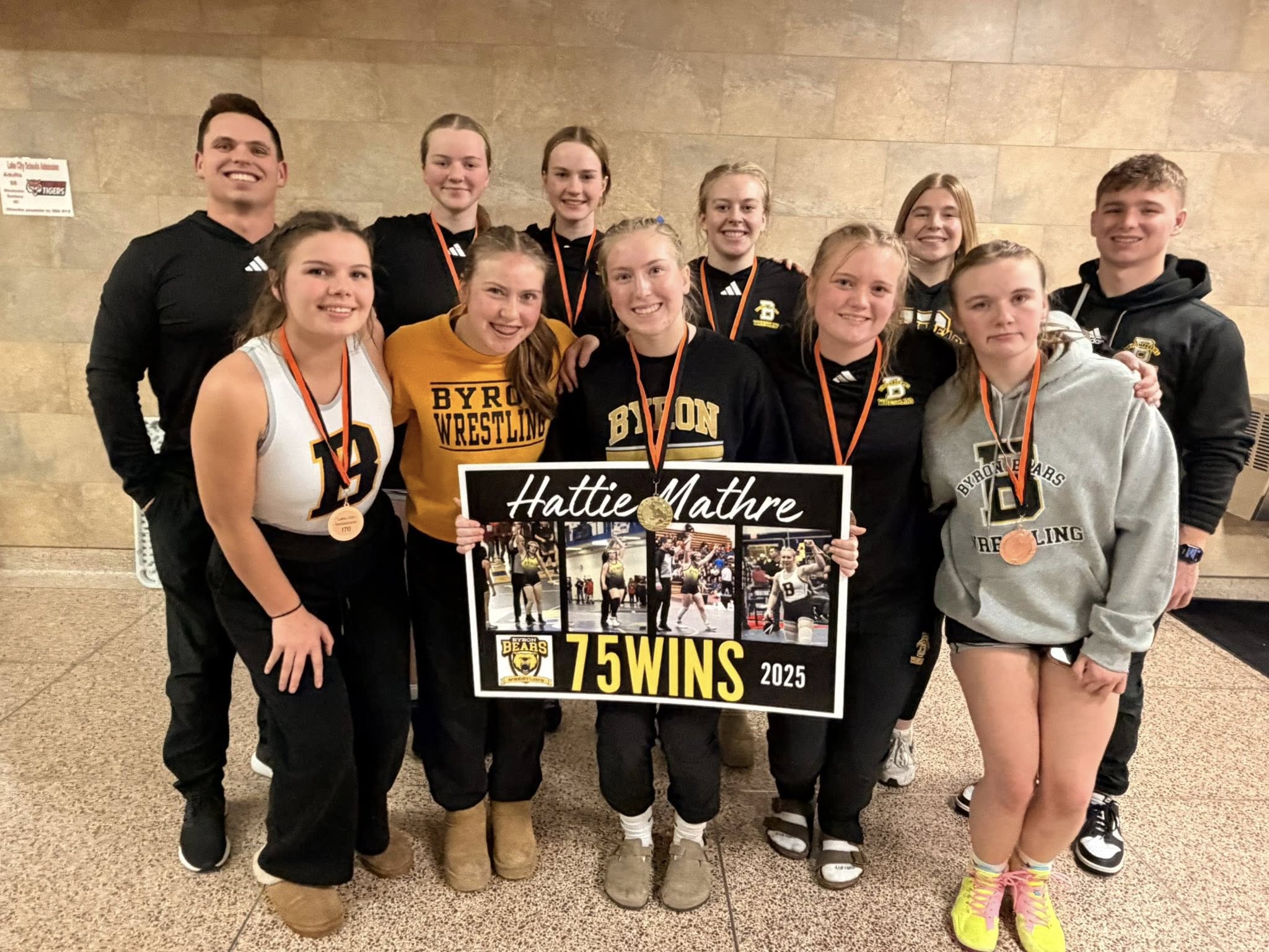 The Byron Wrestling Program had three girls qualify for the 2025 MN State Wrestling Tournament! Congratulations to Madi Hamilton (1st place), Hattie Mathre (1st place), and Kadie Augenstein (2nd place). Also, congratulations to Claire Behle and Brooke Golish on their 5th and 6th place finishes at the Section tournament.